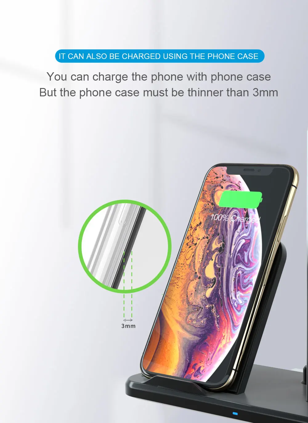 【Universal Wireless Charging Stand】Compatible with all Qi-enabled phones. 10W fast charging for your for Galaxy S10/S10+/S10e/Note 9/S9/S9 Plus/S8/S8 Plus/Note 8 and more Qi-enabled, 7.5W fast wireless charging mode for iPhone Xs Max/ Xs/ XR/ X/8/8 plus, For iwatch,charging speeds can be up to 2W(Note: The Wireless iWatch Charger Not Included), and AirPods can be up to 3W.